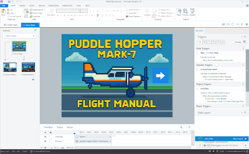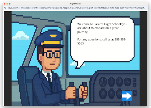 Our project is a little flight manual training, which our example company sells to airlines and flight schools. Some customers want to be able to offer a personalized introduction inside the course. Normally, this would mean creating different versions and builds of the course for each customer. But with custom launch data, we can accomplish this still using one base Storyline project!